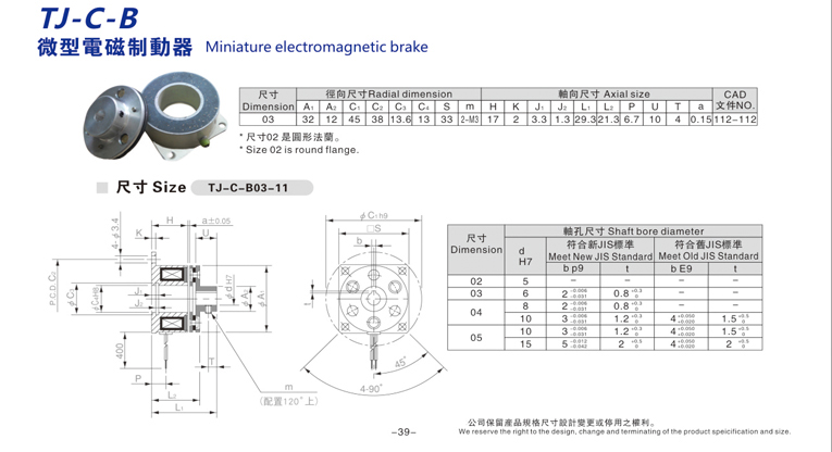 該型微型電磁制動器(TJ-C-B)基本設(shè)計與微型電磁離合器(TJ-C-A)基本相同,是一種高性并且結(jié)構(gòu)緊湊的微型制動器,其制動能強,最適合高精度定位,可以安裝在小型精密機械品上任何安裝位置,簡單且方便。微型電磁制動器具有安裝快捷、噪音低、制動平穩(wěn)、耐用等優(yōu)點,可與微電機配套使用,被廣泛應(yīng)用于廣泛應(yīng)用于門機驅(qū)動、電動輪椅、倉儲自動控制、自動門、醫(yī)療器械、步進電機等自動化機械傳動系統(tǒng)中,起快速停車、安全制動作用。